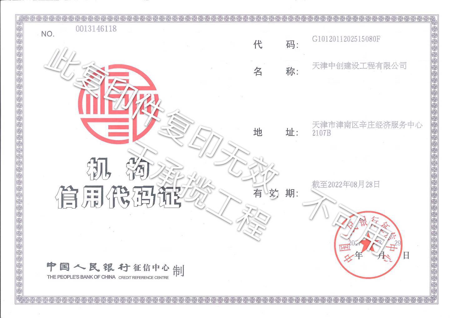 机构信用代码证